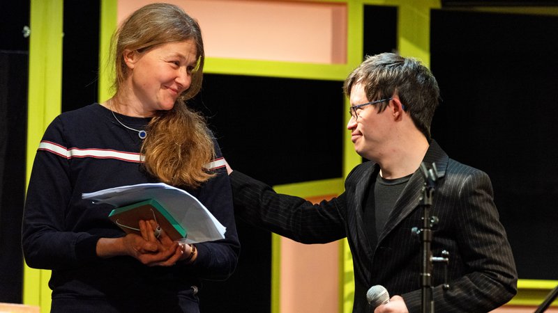 Kamilla Taller unterstütze bei der Moderation Detlef Boie, der den Bereich Arbeit und Bildung im Stiftungsbereich Teilhabe mit Assistenz leitet.